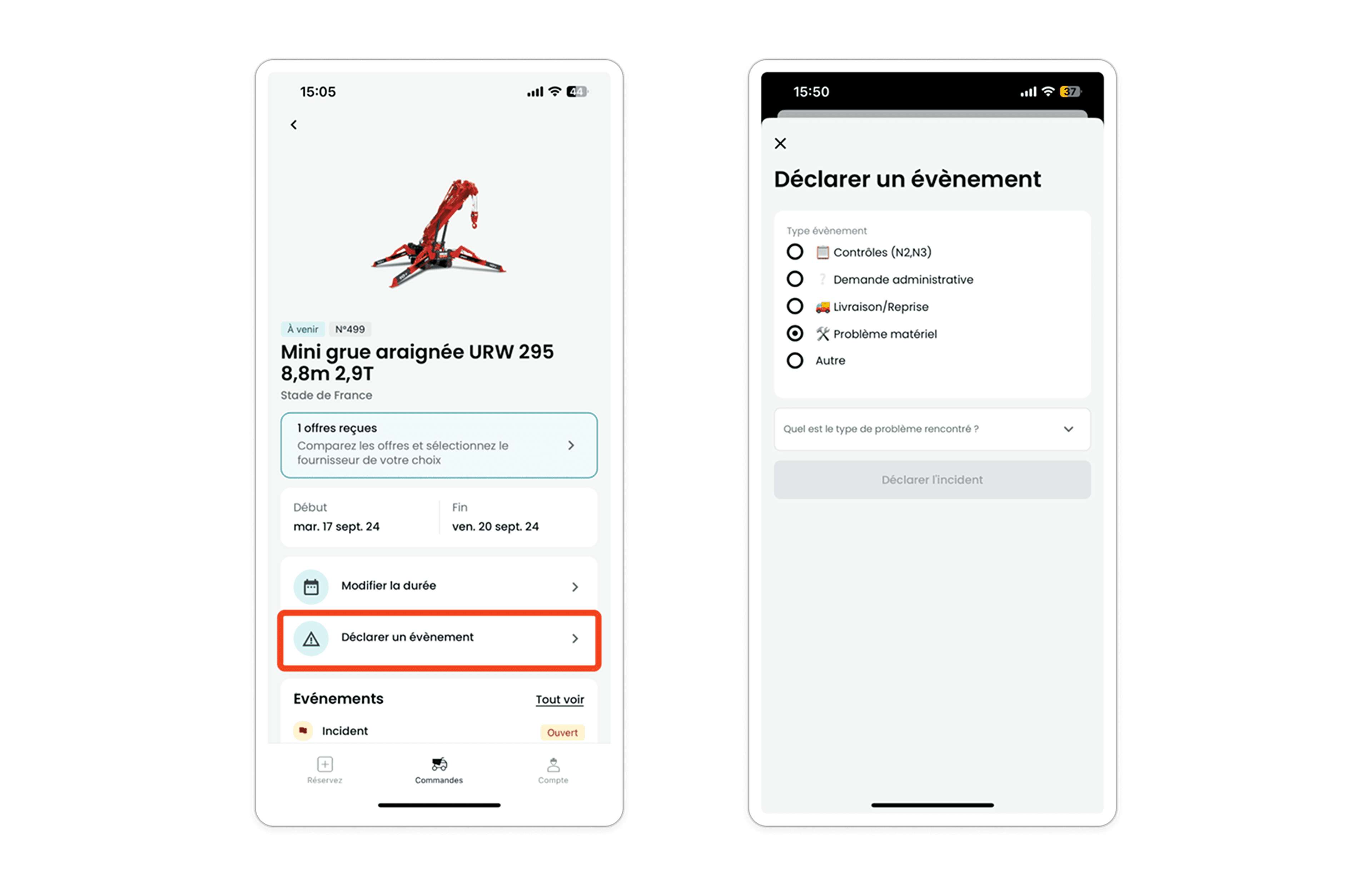 Ouvrez la commande concernée et cliquez sur "Déclarer un événement".