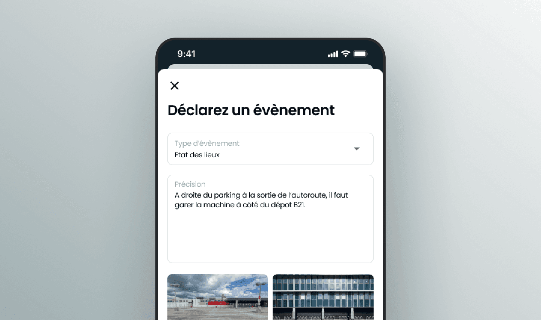 Déclarez un événement (incident, panne…) dans l'app Tracktor via les étapes ci-dessous ou le guide interactif.