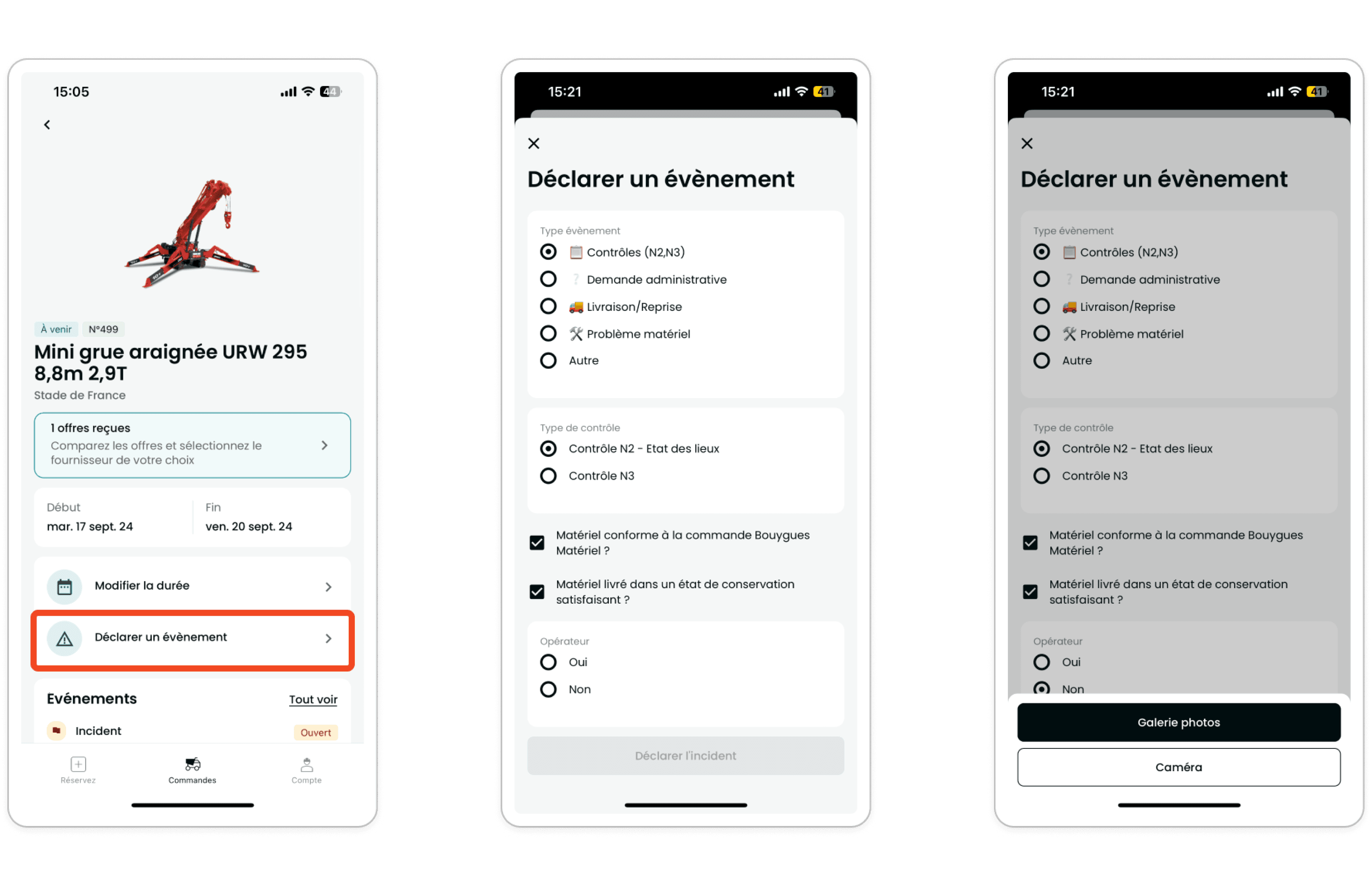 Ouvrez la commande concernée et cliquez sur "Déclarer un événement".