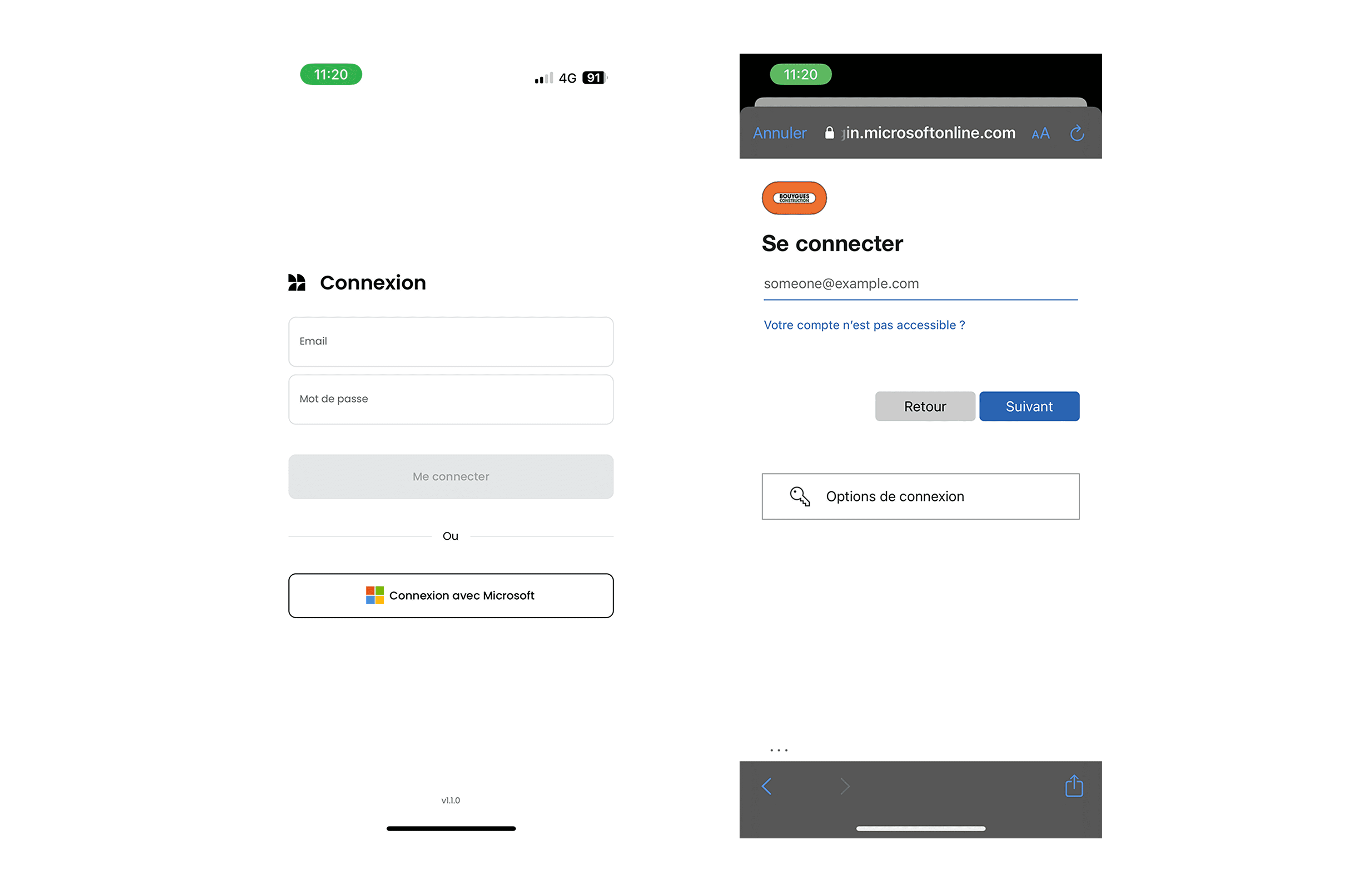 Vous serez redirigé vers la page de connexion Microsoft ou Google.
